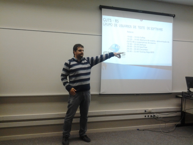 Na noite de hoje tive o prazer de participar de um evento do guts-rs, com uma contagem por baixo de ao menos 50 pessoas, na qual testadores, desenvolvedores e pessoal ligado à análise e processos, puderam conhecer um pouco sobre a técnica, algumas ferramentas utilizadas em diferentes contextos e por final uma sessão mão na massa, com um testing dojo.