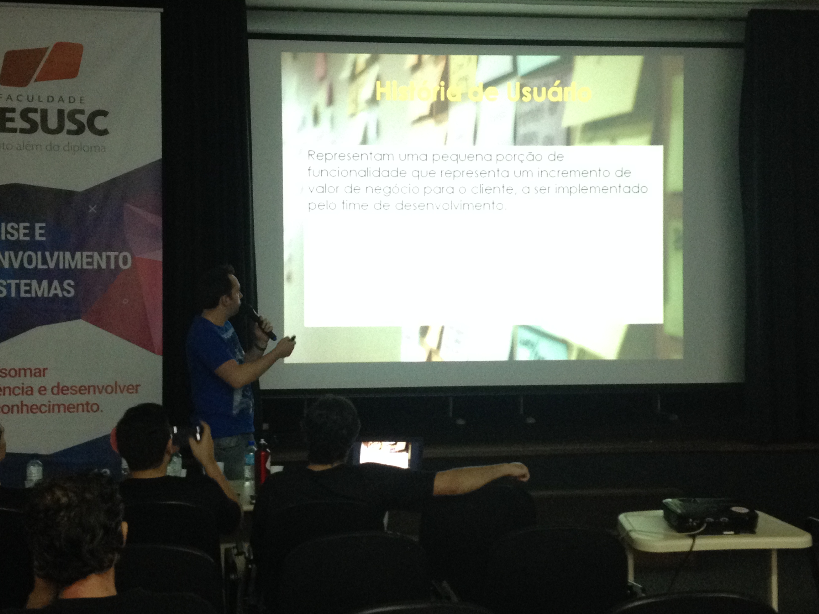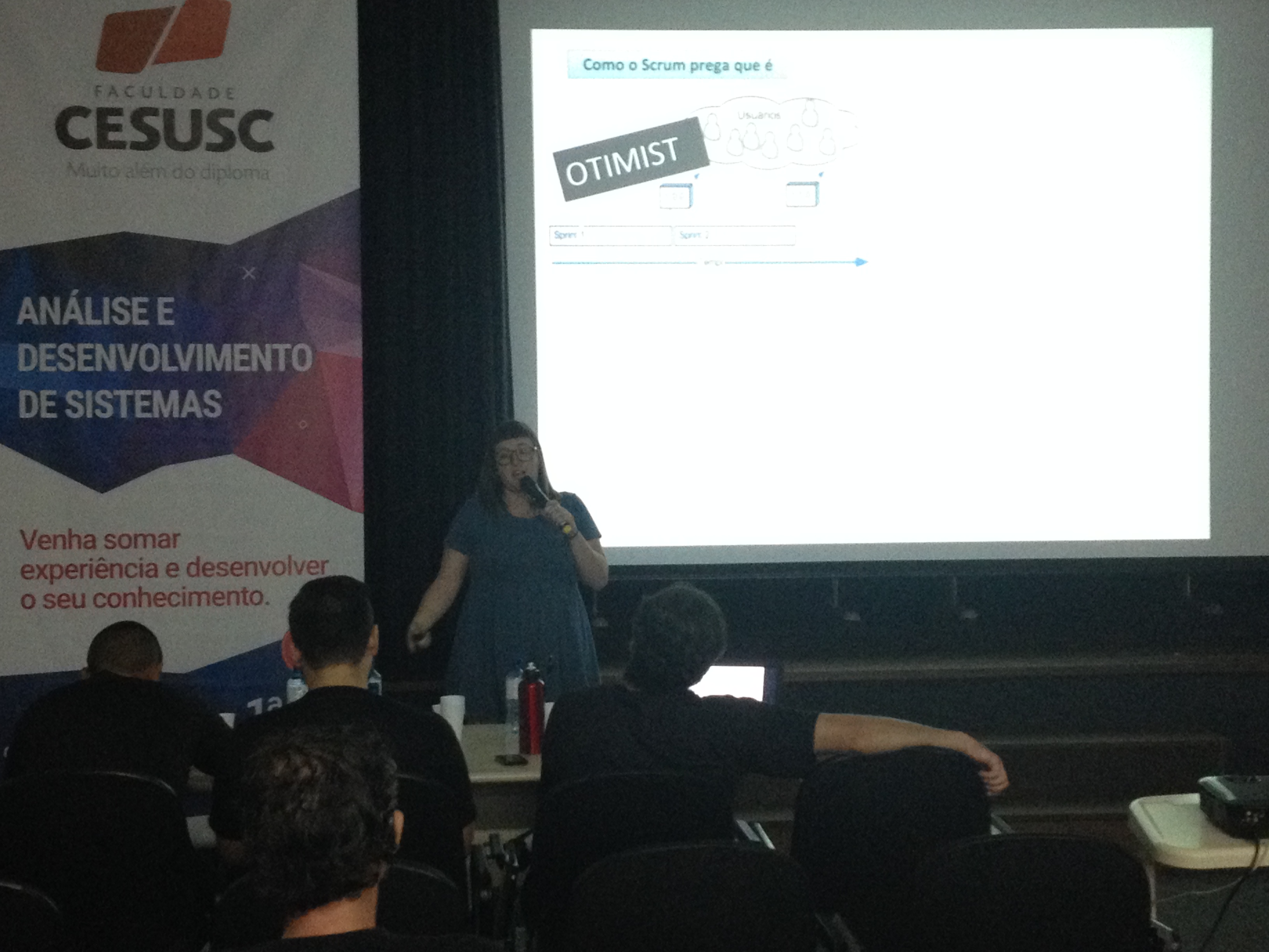 A Mariana Graf (minha colega na Taller) apresentou e convidou a galera para se juntar ao grupo do Agile Floripa.