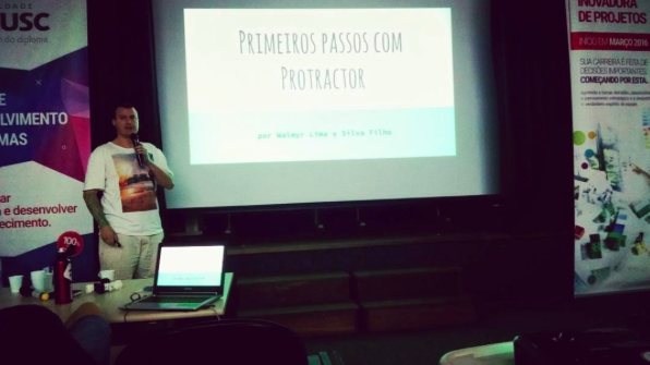 Eu pude contribuir com uma palestra mais técnica, para quem está começando/quer começar a utilizar o Protractor para testes de aplicações web.